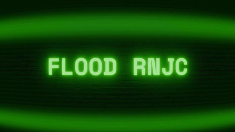 Old green TV screen showing text FLOOD RISK appearing in random glitch and coding style Free Video