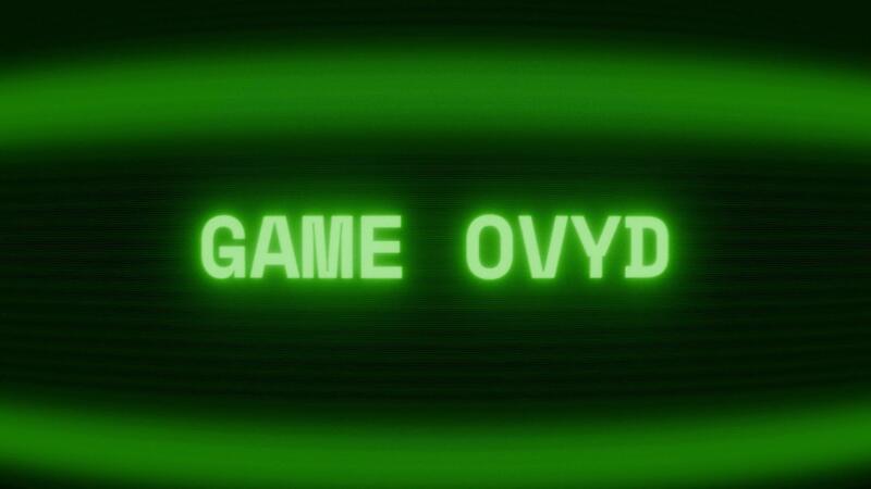 Old green TV screen showing text GAME OVER appearing in random glitch and coding style Free Video