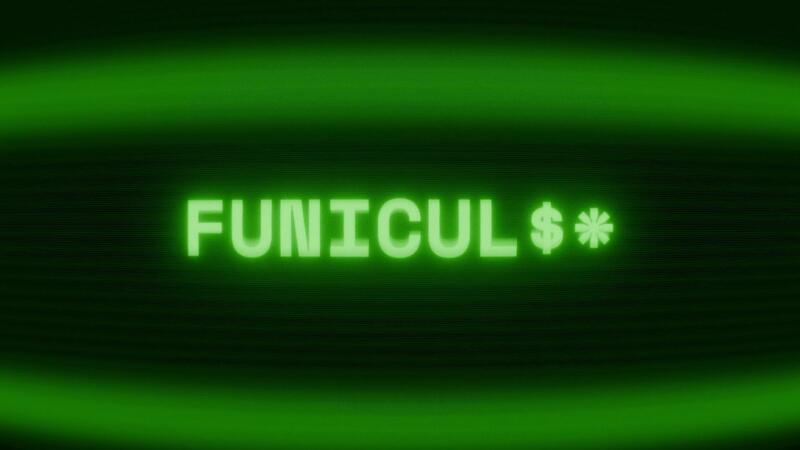 Old green TV screen showing text FUNICULAR appearing in random glitch and coding style Free Video