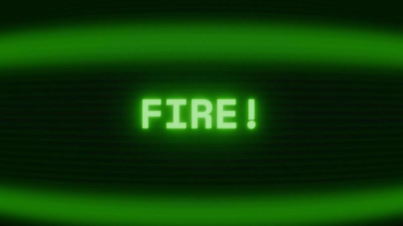 Old green TV screen showing text FIRE appearing in random glitch and coding style Free Video