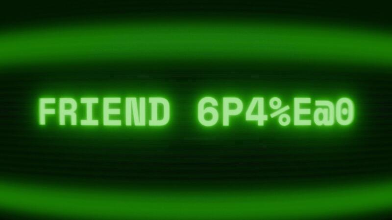 Old green TV screen showing text FRIEND REQUEST appearing in random glitch and coding style Free Video