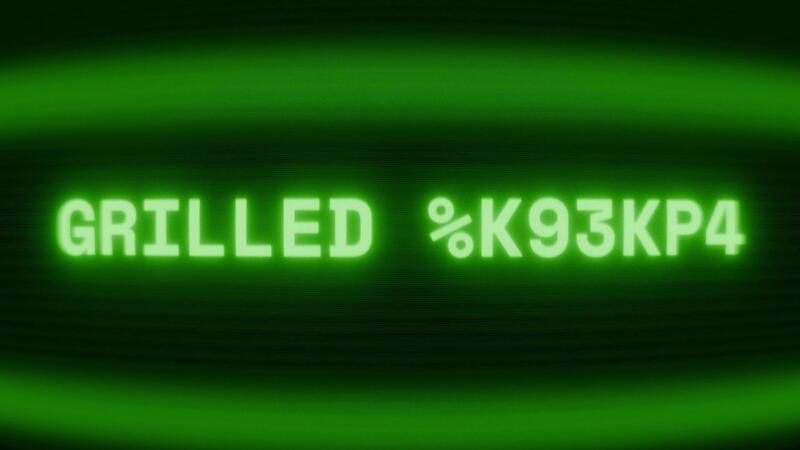 Old green TV screen showing text GRILLED CHICKEN appearing in random glitch and coding style Free Video