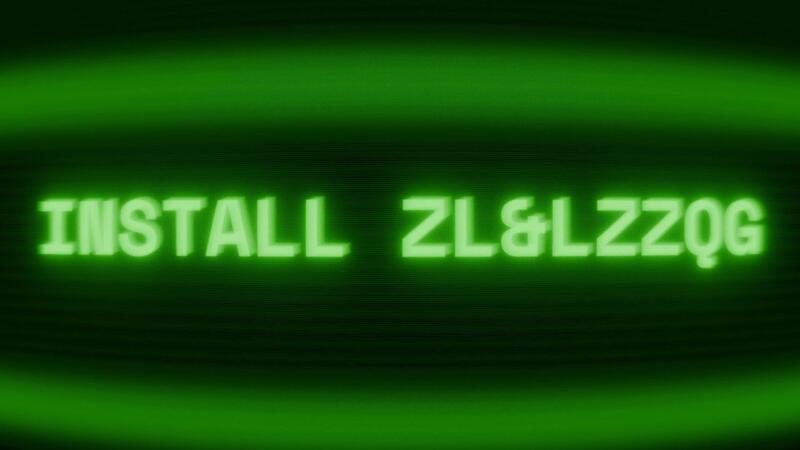 Old green CRT screen showing text INSTALL COMPLETE appearing in random glitch and coding style Pro Video
