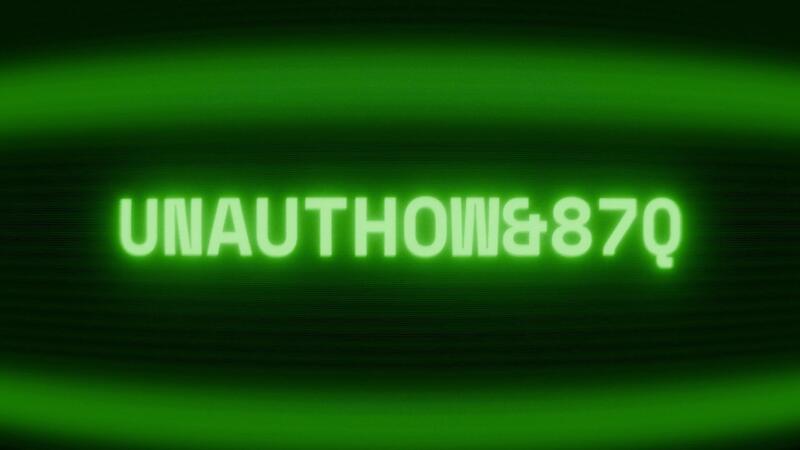Old green CRT screen showing text UNAUTHORIZED appearing in random glitch and coding style Pro Video