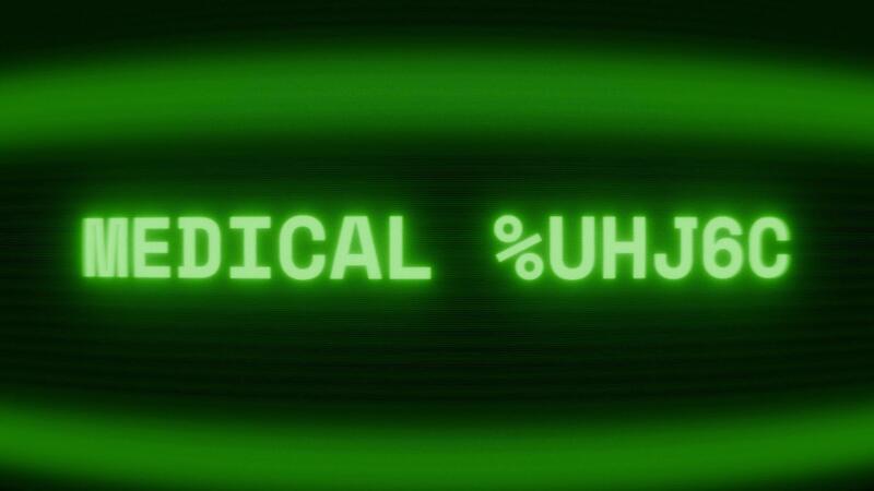 Old green TV screen showing text MEDICAL ALERTS appearing in random glitch and coding style Free Video