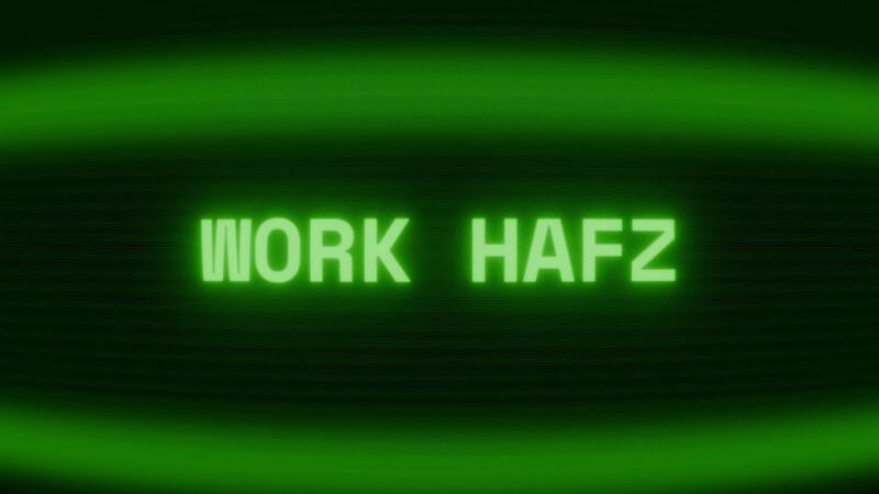 Old green CRT screen showing text WORK HARD appearing in random glitch and coding style Pro Video