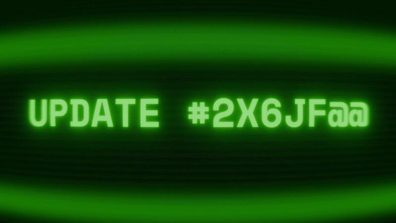 Old green CRT screen showing text UPDATE COMPLETE appearing in random glitch and coding style Pro Video