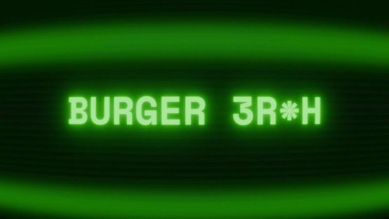 Old green CRT screen showing text BURGER MEAL appearing in random glitch and coding style Free Video