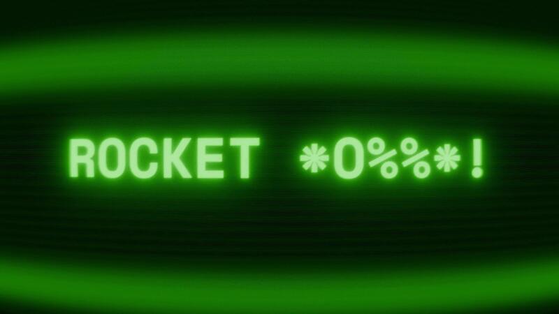 Old green CRT screen showing text ROCKET LAUNCH appearing in random glitch and coding style Pro Video