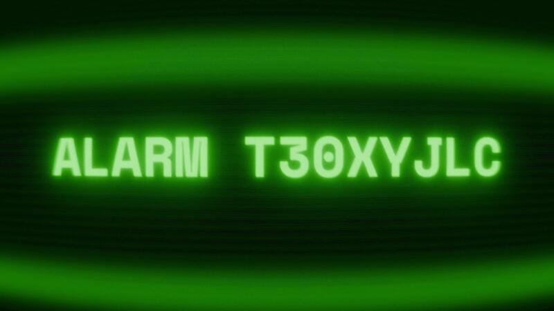 Old green TV screen showing text ALARM TRIGGER appearing in random glitch and coding style Free Video