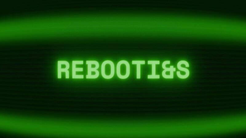 Old green CRT screen showing text REBOOTING appearing in random glitch and coding style Pro Video