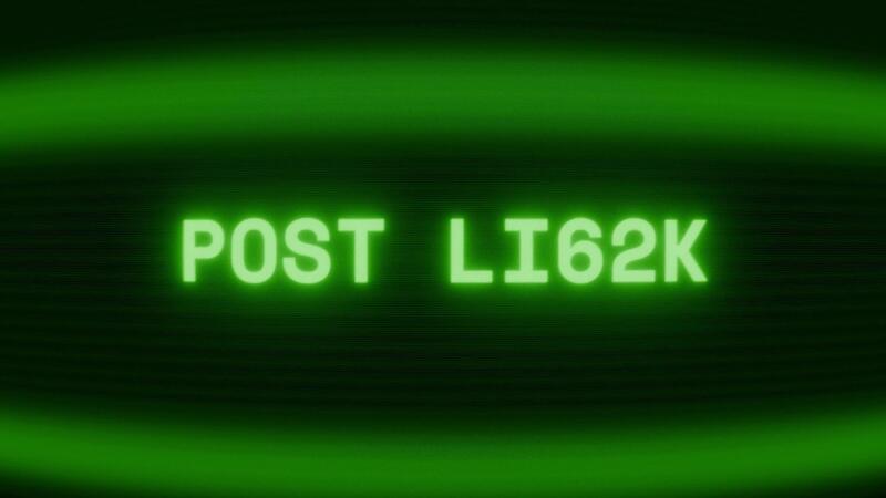 Old green CRT screen showing text POST LIKED appearing in random glitch and coding style Pro Video