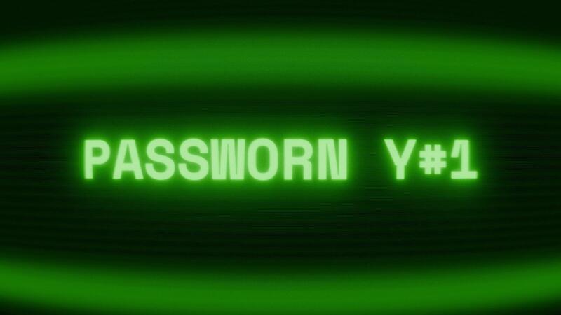 Old green CRT screen showing text PASSWORD SET appearing in random glitch and coding style Pro Video