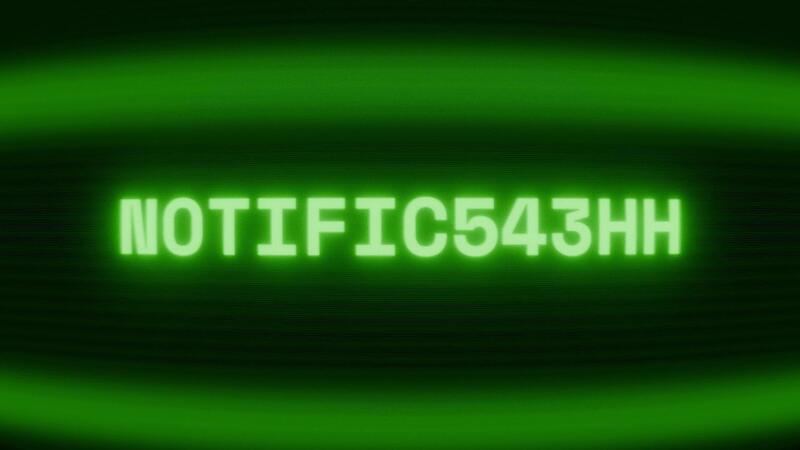 Old green CRT screen showing text NOTIFICATION appearing in random glitch and coding style Pro Video