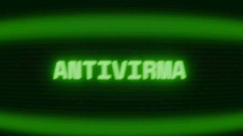 Old green CRT screen showing text ANTIVIRUS appearing in random glitch and coding style Free Video