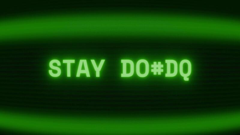 Old green CRT screen showing text STAY DOWN appearing in random glitch and coding style Pro Video