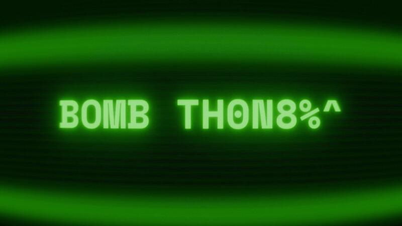 Old green CRT screen showing text BOMB THREAT appearing in random glitch and coding style Free Video