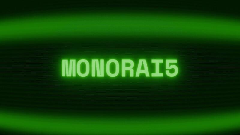 Old green CRT screen showing text MONORAIL appearing in random glitch and coding style Pro Video
