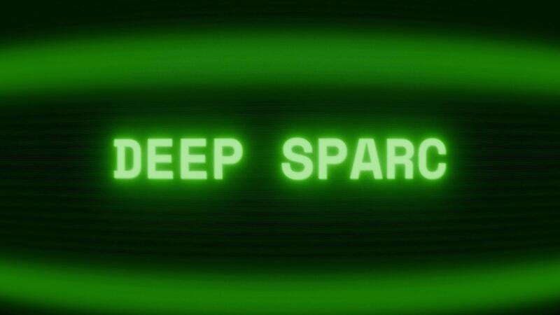 Old green CRT screen showing text DEEP SPACE appearing in random glitch and coding style Free Video