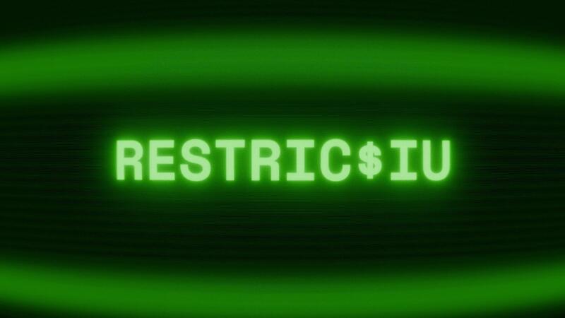 Old green CRT screen showing text RESTRICTED appearing in random glitch and coding style Pro Video
