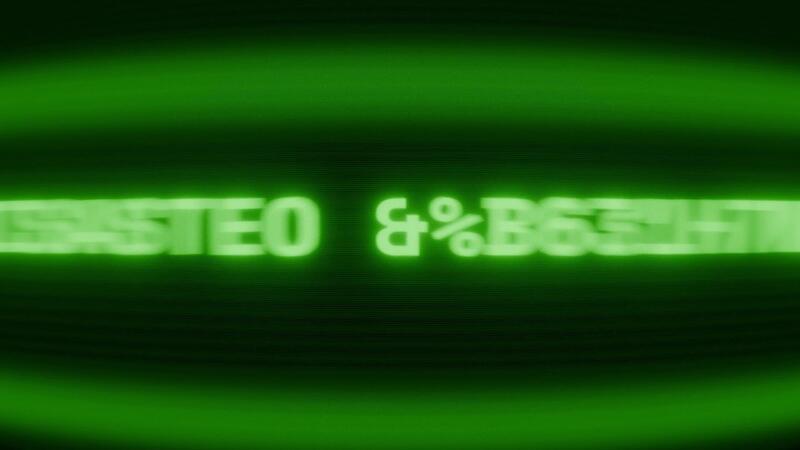 Old green CRT screen showing text DISASTER MANAGEMENT appearing in random glitch and coding style Free Video