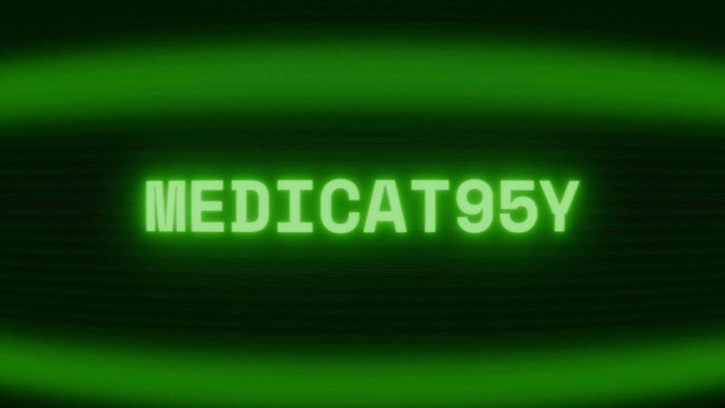 Old green CRT screen showing text MEDICATION appearing in random glitch and coding style Pro Video