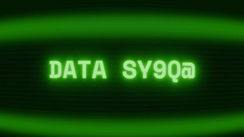 Old green CRT screen showing text DATA SYNCH appearing in random glitch and coding style Free Video
