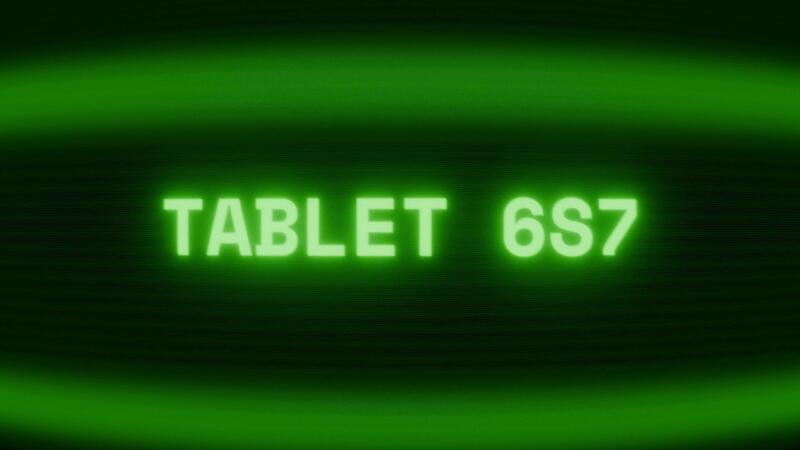 Old green CRT screen showing text TABLET PEN appearing in random glitch and coding style Pro Video
