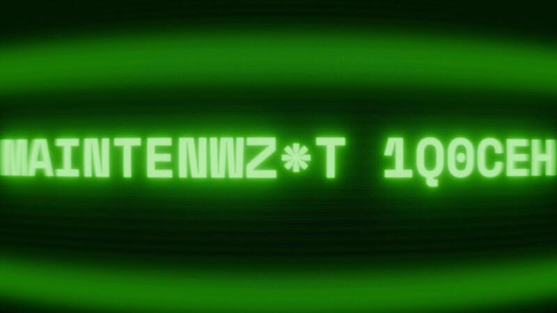 Old green TV screen showing text MAINTENANCE NOTICE appearing in random glitch and coding style Free Video