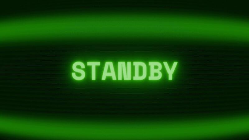 Old green CRT screen showing text STANDBY appearing in random glitch and coding style Pro Video