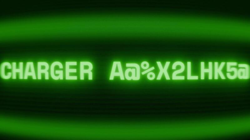 Old green CRT screen showing text CHARGER DISCONNECT appearing in random glitch and coding style Free Video