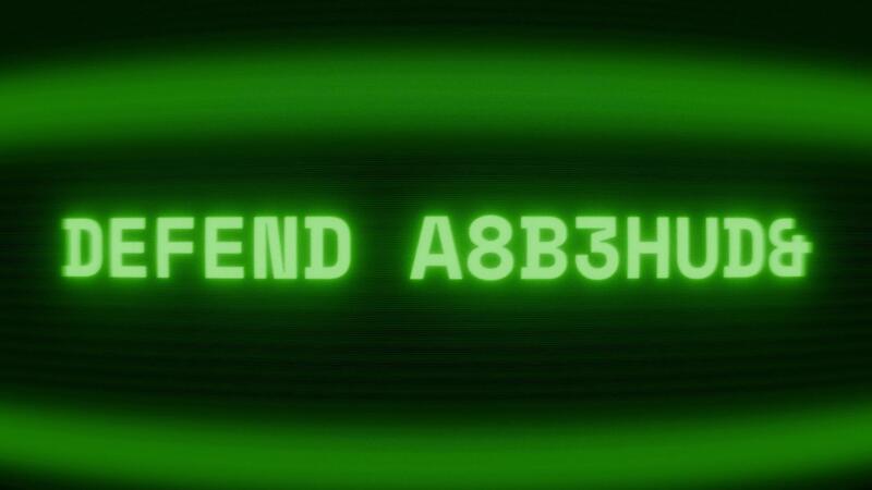 Old green CRT screen showing text DEFEND POSITION appearing in random glitch and coding style Free Video