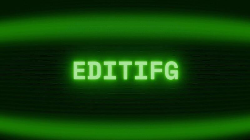 Old green CRT screen showing text EDITING appearing in random glitch and coding style Pro Video