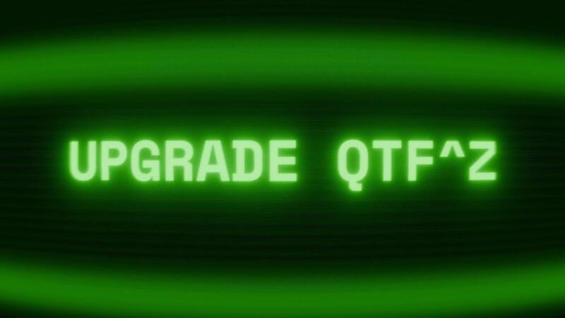 Old green CRT screen showing text UPGRADE READY appearing in random glitch and coding style Pro Video