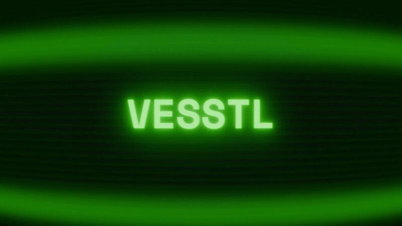 Old green CRT screen showing text VESSEL appearing in random glitch and coding style Pro Video