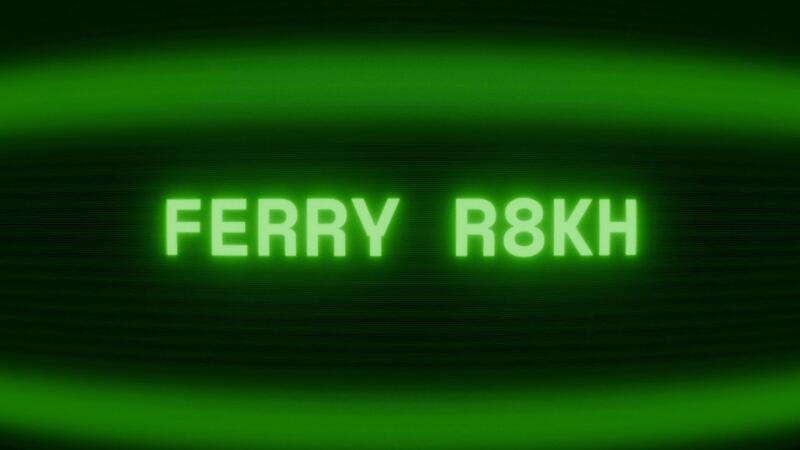 Old green CRT screen showing text FERRY RIDE appearing in random glitch and coding style Pro Video