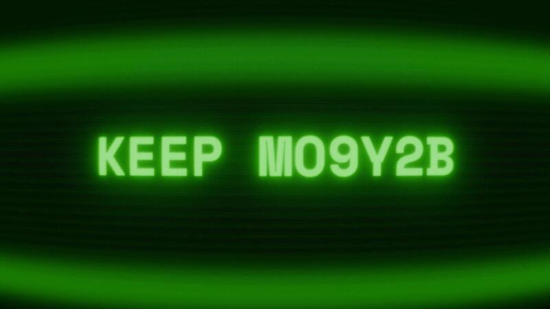 Old green CRT screen showing text KEEP MOVING appearing in random glitch and coding style Pro Video