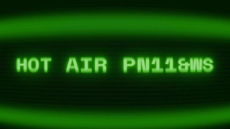 Old green CRT screen showing text HOT AIR BALLOON appearing in random glitch and coding style Pro Video