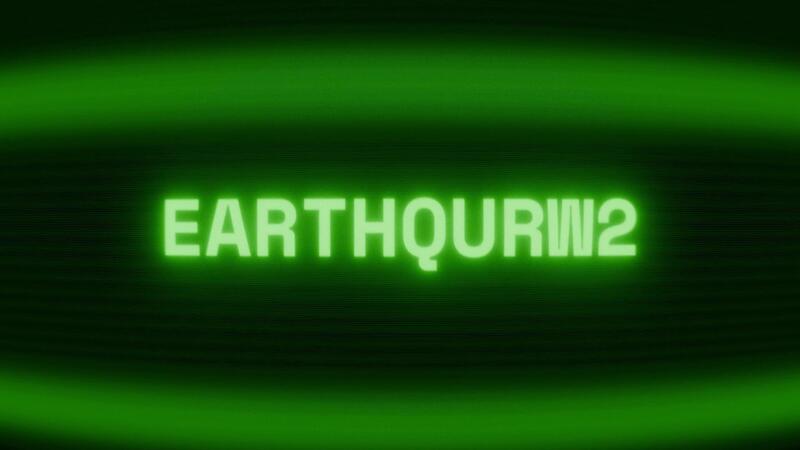 Old green CRT screen showing text EARTHQUAKE appearing in random glitch and coding style Pro Video