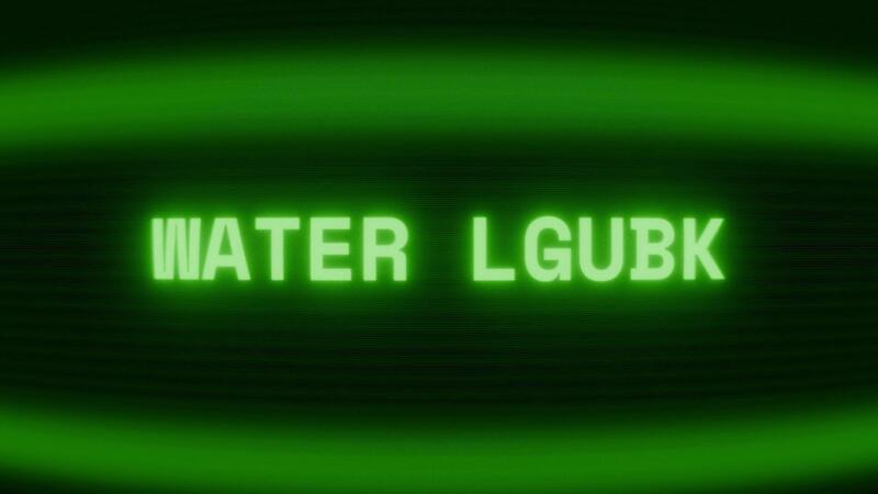 Old green CRT screen showing text WATER LEVEL appearing in random glitch and coding style Pro Video