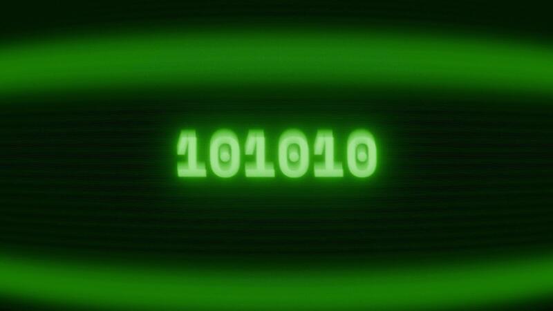 Old green CRT screen showing text 101010 appearing in random glitch and coding style Free Video