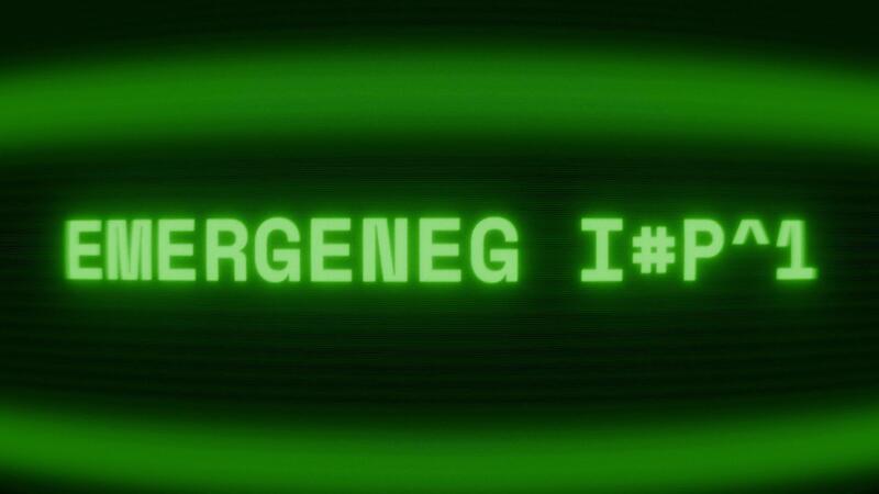 Old green screentv showing text EMERGENCY EXIT appearing in random glitch and coding style Free Video