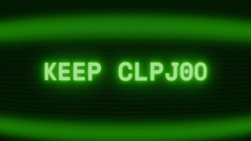 Old green CRT screen showing text KEEP CLEAR appearing in random glitch and coding style Pro Video