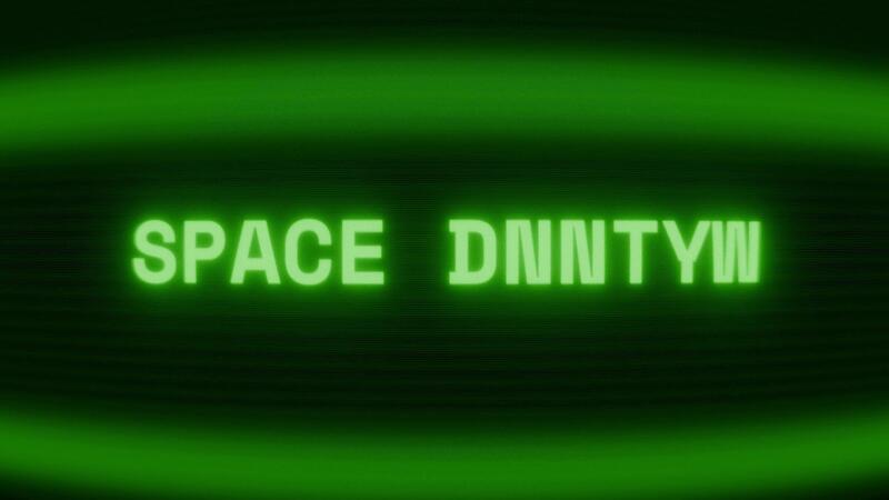 Old green TV screen showing text SPACE DEBRIS appearing in random glitch and coding style Free Video