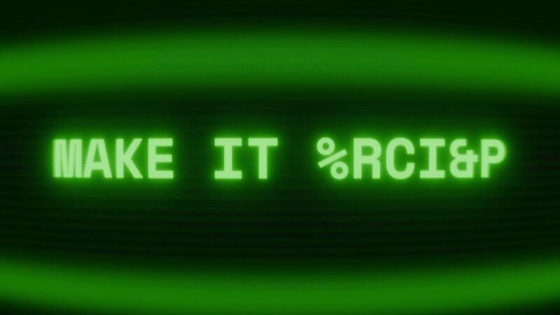 Old green TV screen showing text MAKE IT HAPPEN appearing in random glitch and coding style Free Video