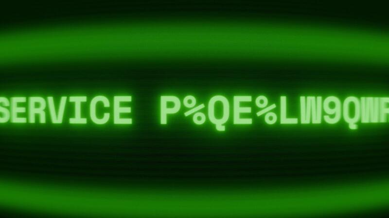 Old green TV screen showing text SERVICE UNAVAILABLE appearing in random glitch and coding style Free Video