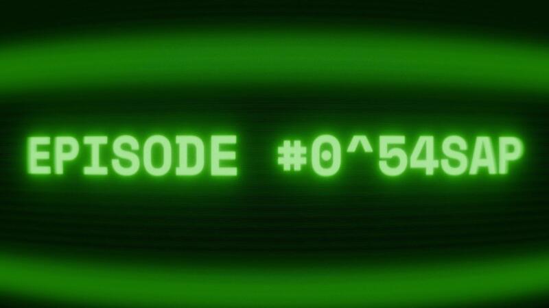 Old green CRT screen showing text EPISODE COMPLETE appearing in random glitch and coding style Pro Video