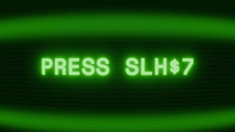 Old green CRT screen showing text PRESS START appearing in random glitch and coding style Pro Video