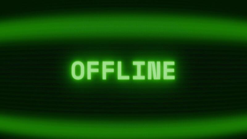Old green CRT screen showing text OFFLINE appearing in random glitch and coding style Pro Video