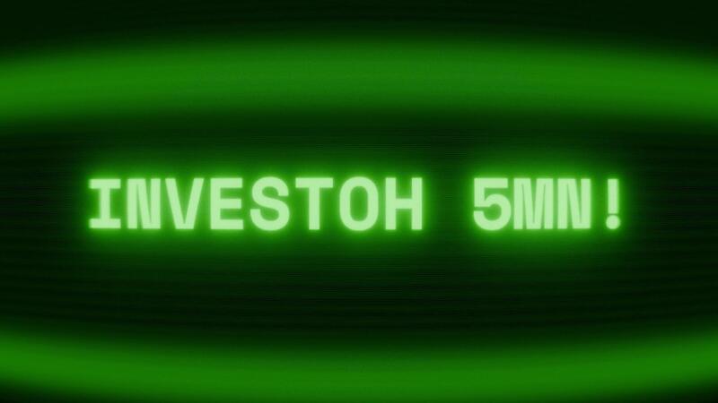 Old green CRT screen showing text INVESTOR MEET appearing in random glitch and coding style Pro Video